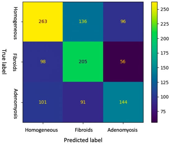 Figure 1. The matrix highlights where the model fails. Rows show diagnosis made by the experienced sonographer (true label), while columns show predictions made by the machine (predicted label). Diagonal elements were the number of points where the predicted label was the same as the actual label, while the off-diagonal ones were misinterpreted by the model.