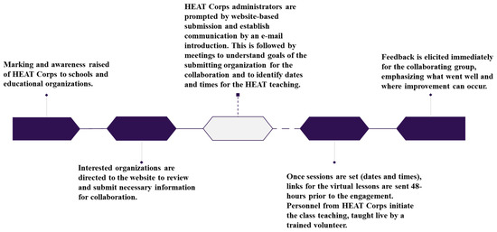In implementing an international COVID-19 school-based initiative over two years of the pandemic, the ability to collaborate with school systems was seen as welcomed and needed. The necessity grew from the concern of many school leaders and personnel attempting to balance “staying up to date with COVID-19 and vaccines guidance” with “managing the mental health consequences” of the staff and students. As such, the HEAT Corps initiative shared the responsibilities of the school systems by providing additional resources (e.g., face masks and vaccine access sites) as requested by the communities. Further, the strategy of building an active relationship with each school system and educational organization has allowed the HEAT Corps model to evolve to meet other public health crises that may impact a school and community; such collaboration is established through the ease of access to HEAT Corps (Figure 1).
