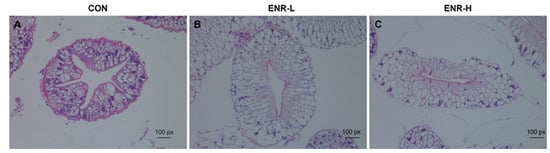 3.1. Enrofloxacin Residues Induced Hepatopancreas Injury in E. sinensis