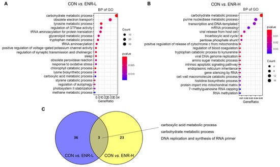 3.3. GO Analysis of DEGs Found Significant Enrichment of Biological Processes Related to Metabolism Process in Enrofloxacin Residue Groups