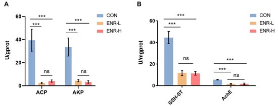 3.7. Immune Responses and Metabolic Enzymatic Activities following Exposure to Enrofloxacin Residues