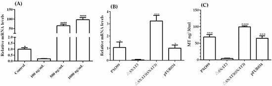 3.5. Role of xoSNAT3 in MT Biosynthesis in Xoo