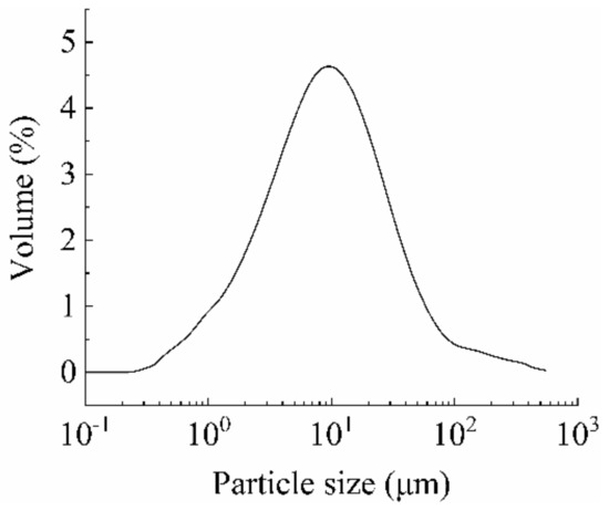 In order to simulate the airborne particles in the briquetting plant, the raw straws of naked oat were collected in the plant and ground by the CJM–SY–B multi-dimensional vibrating ball mill pulverizer (Qinhuangdao Taijihuan Nano Products Co., Ltd., Qinhuangdao, China). The size distribution of the ground particles was analyzed by the Malvern MasterSizer2000 laser particle size analyzer (Malvern PANalytical, Malvern, UK), as shown in