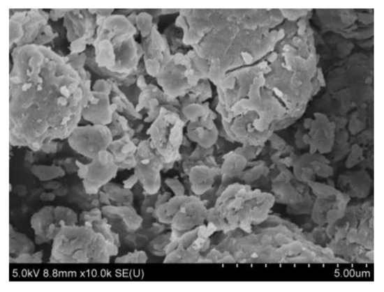 Figure 3. The shapes of the particles were mostly irregular. Some small particles were attached to larger ones. The morphology of biomass materials greatly depends on the degree of and the specific technology used for crushing. When biomass particles are smaller than plant cells (30~50 μm), the cell structures are damaged, exposing the pores in the fibrous tissue to the particle surface [
