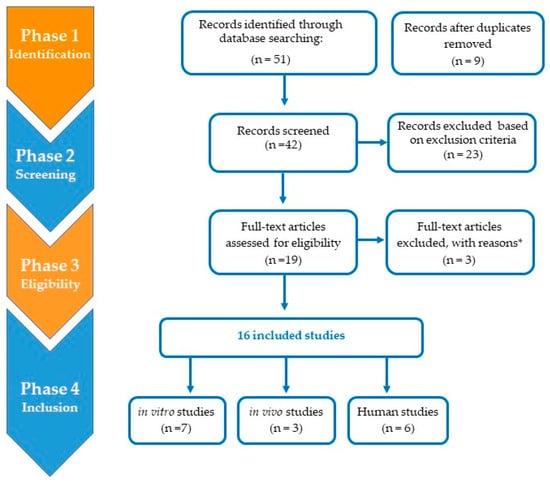 A systematic search was performed in accordance with the PRISMA guidelines [36,37]. A literature search to identify relevant articles was carried out until 30 August 2022 using the electronic bibliographic databases Pubmed and Scopus. The keywords used for the searching scheme (in the titles or abstracts) were an association of “benzene” and “microRNA” (first key words) and, as a second key words, “exposure”, “biomonitoring”, “human”, “in vitro” and “in vivo”.