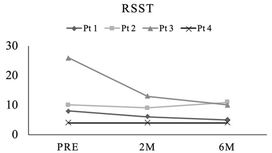 As for the RSST, more than three salivary swallows within 30 s were achieved throughout the preoperative and postoperative periods.