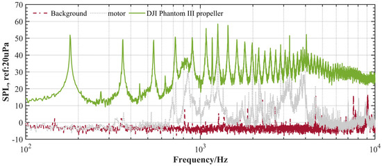 - Sinibaldi, G.; Marino, L. Experimental Analysis on the Noise of Propellers for Small UAV. Appl. Acoust. 2013, 74, 79–88. [Google Scholar] [CrossRef]