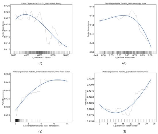 4.2. Nonlinear Effects of Residential Built Environment Variables