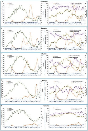 The authors would like to thank to the National Epidemiology Centre (INE) and the National Meteorology Agency in Spain (AEMET) for the epidemiological and meterological data used in the present work. This study is part of the research of the Institute of Biomedicine of Málaga (IBIMA) and the Junta de Andalucía working group CTS-162.