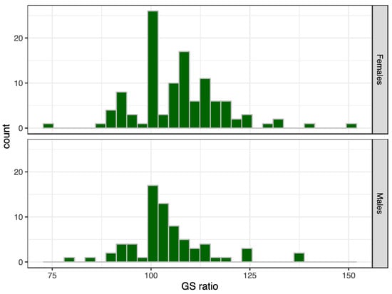 | GS ratio | 168 | 1.07 ± 0.10 | 1.04 ± 0.10 | 1.06 ± 0.10 |