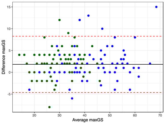 - Alley, D.E.; Shardell, M.D.; Peters, K.W.; McLean, R.R.; Dam, T.-T.L.; Kenny, A.M.; Fragala, M.S.; Harris, T.B.; Kiel, D.P.; Guralnik, J.M.; et al. Grip Strength Cutpoints for the Identification of Clinically Relevant Weakness. J. Gerontol. A Biol. Sci. Med. Sci. 2014, 69, 559–566. [Google Scholar] [CrossRef] [PubMed]