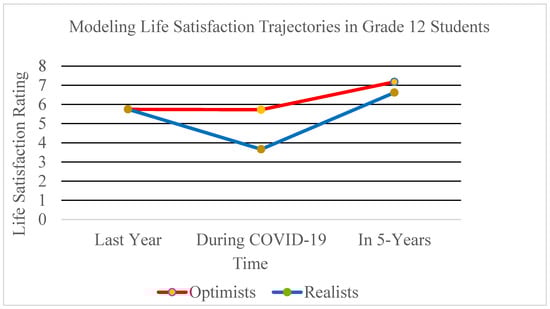 The current study sought to assess the trajectories of life satisfaction (past, current, and future assessed cross-sectionally) among Canadian Grade 12 students (i.e., those finishing high school) during the first wave of the COVID-19 pandemic. We focused on this group due to the many losses they experienced during the pandemic, which interfered with their final months of high school and led to cancelled proms, graduation ceremonies, and an uncertain transition into postsecondary education. Using LCA, we found that two subgroups emerged from the sample. The subgroups were similar regarding their ratings of life satisfaction pre-pandemic. In addition, both groups showed the typical pattern of anticipating that things would improve in the future (i.e., the next five years), reflecting a degree of resilience and openness to increasing opportunities despite the many losses they experienced. What differed between the groups were their experiences during COVID-19 and the degree to which they anticipated improvements in life satisfaction post COVID-19. The optimists experienced only a small decline in life satisfaction during the pandemic, appearing more resilient to the impacts of COVID-19, and felt as though they would bounce back to optimal life satisfaction in the future. The second subgroup, the realists, seemed more impacted by the pandemic, feeling less satisfied with life during this time and less optimistic of their future.
