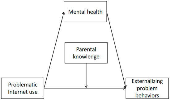 As the occurrence of adolescent externalizing problem behaviors might be influenced by factors across domains (including Internet, family and individuals), it is difficult to address and prevent adolescent externalizing problem behaviors from a single domain. The findings mentioned above suggest that problematic Internet use may be a salient predictor of adolescent externalizing problem behaviors, and mental health may possibly produce the intermediary effect between problematic Internet use and externalizing problem behaviors and parental knowledge may play an important role in buffering the association between problematic Internet use and adolescent externalizing problem behaviors. The present exploration of these factors contributes to the construction of a meaningful intervention plan for adolescent externalizing problem behaviors, which is a matter that has seldom been given attention in the existing literature—to the best of our knowledge, no previous research has explored the combined influences of problematic Internet use, mental health and parental knowledge on externalizing problem behaviors among adolescents. Therefore, based on the self-determination theory, social cognitive theory, educational ecosystem theory and risk-buffering model, this study expands the existing literature on problematic Internet use and externalizing problem behaviors.