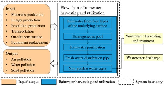 System boundary of rainwater harvesting and utilization for the life cycle assessment study.