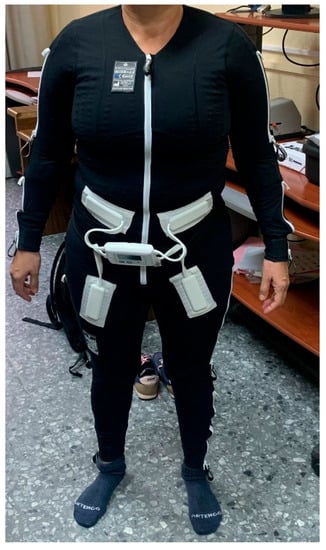 - Uszynski, M.; McCarron, C. Benefits of Innovative Exopulse Mollii Full-Body Electric Garment Intervention on Lower Limb Strength, Gait Speed, Lower Back Pain, Quality of Life, and Fatigue in a Female with Multiple Sclerosis—A Case Study. Physiother. Rev. 2022, 26, 49–55. [Google Scholar] [CrossRef]