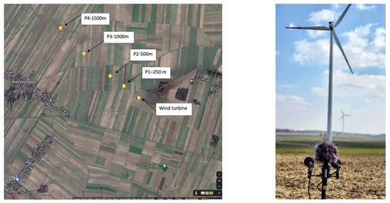 Figure 1. Due to the more stable weather conditions, since there was no wind on the microphones’ membranes during all turbine nominal work for at least 10 min, recordings from wind farm A were used in the following parts of the experiment.