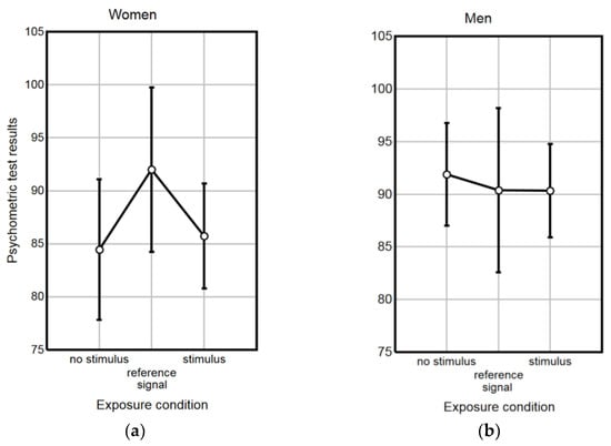 p < 0.05). Therefore, the differences in the psychometric test performance due to various exposure conditions were analyzed both in females and males, separately and together. The results in