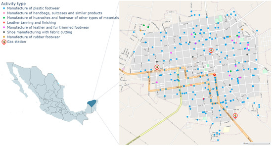 - Geografía (INEGI), I.N. de E. y Directorio Nacional de Unidades Económicas. DENUE. Available online: https://www.inegi.org.mx/app/mapa/denue/default.aspx (accessed on 6 September 2021).