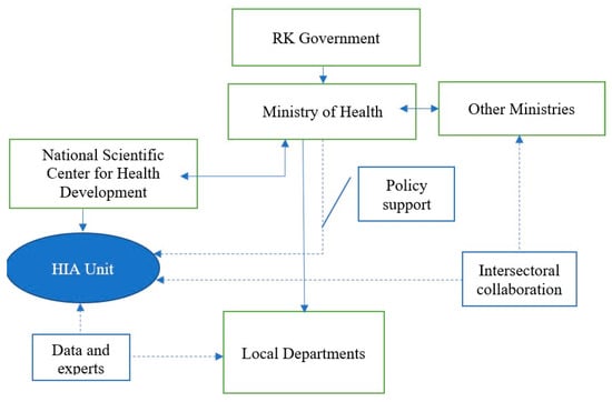 To map opportunities for HIA implementation in the RK we used literature review of enabling factors of HIA implementation as well as legislative documentation within the country. The proposed model was analyzed by the first author based on findings from literature. The analysis was supported by consultations with second and third author.