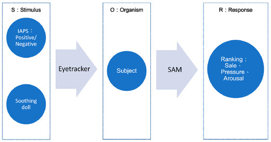 This study also proposes a modified S-O-R model. In this study, the eye tracker was placed in the S-O mediation and the SAM was placed in the O-R mediation. However, these two tools are not just a simple mediation process, they may each cover a part of O. Figure 1 shows only a simplified model. The two arrows overlap with O, and we cannot know how much they are in O. It is very likely that both the eye tracker and the SAM can be placed in O to show the psychological activity of consumers. R is the subsequent shopping behavior. Behavior during the COVID-19 crisis appears to be consistent with behavior exhibited during historic shock events [33]. Under negative and highly emotional stimulation, in which everyone is nervous about the epidemic, impulsive shopping behavior is enhanced [5], which indirectly leads to the demand for soothing dolls. This was also one of the research motivations of this paper. Moreover, this study proposes a novel research model comprising the eye tracker and SAM for the S-O-R framework.