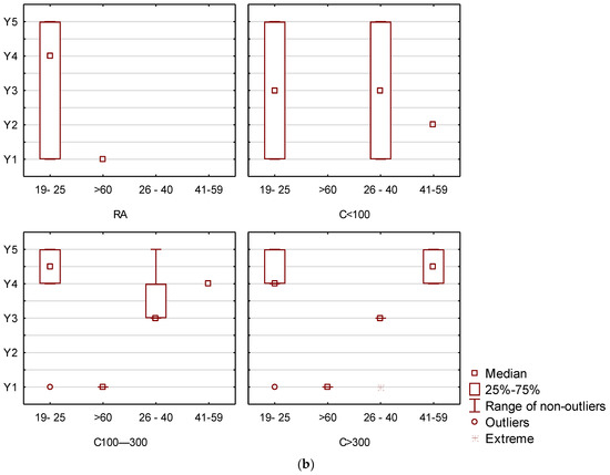 As for the distribution of respondents, the obtained structure may result from the fact that the study was conducted via the Internet. It is well known that young people are the main users of the Internet, so it is not surprising that they were the most numerous. It is worth noting that the research will continue, and the sample will be balanced with other categories of respondents in the future to study more equal groups of survey participants.