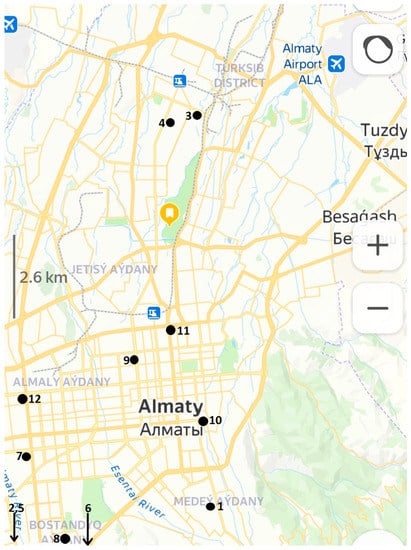Location of included salons in Almaty, Kazakhstan (from yandex.kz).