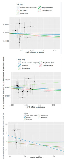 The scatter plot in Figure 3 shows the direction of the causal effect, and it is still not significant.