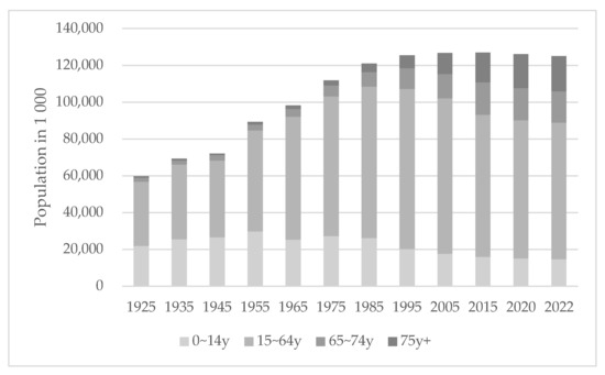 - Ministry of Internal Affairs and Communications. Population Estimates. 2022. Available online: https://www.stat.go.jp/english/index.html (accessed on 26 January 2023).