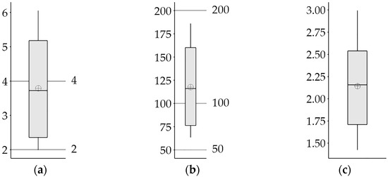 Boxplots of mCd (a), RI (b), and PIave (c) according to average values.
