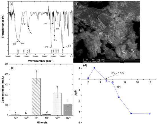 - Oussalah, A.; Boukerroui, A.; Aichour, A.; Djellouli, B. Cationic and Anionic Dyes Removal by Low-Cost Hybrid Alginate/Natural Bentonite Composite Beads: Adsorption and Reusability Studies. Int. J. Biol. Macromol. 2019, 124, 854–862. [Google Scholar] [CrossRef] [PubMed]