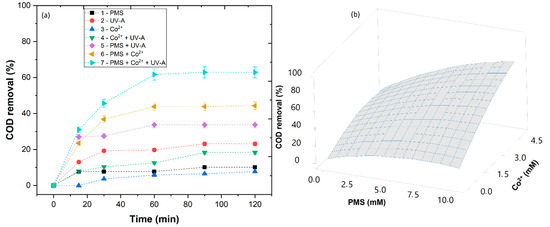 | [PMS] | [Co2+] | Radiation | COD Removal (%) | ||