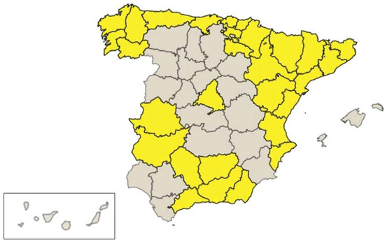 Spanish provinces selected for the study.