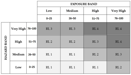 | RL 4 | 151–200 | Seek specialist advice Product replacement Task elimination or automatization Containment/Glove box/Glove bag Worker isolation (separate room/cabin) |