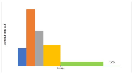 A per diem system is considered to break the dichotomy between retrospective and prospective. On the one hand, remuneration per day is set ex ante to motivate physicians to decrease actual costs; on the other hand, providers are still dominant in patients’ length of stay (LOS) which further determines total costs []. As a result, not all the per diem payment could achieve the expected goal, additional incentives to curtail LOS and enhance accuracy would be required [,]. The per diem system combined with a per case payment including diagnosis groups or department classification has thus emerged in several countries, which adds the motivations to contain costs [,]. Furthermore, step-down payment rates tend to replace the flat rates to reduce unnecessary periods of hospitalization [,]. Degressive per diem rates are advocated but when and how to diminish the rates remains in doubt []. Only a limited number of studies have shed light on the mechanism of declining rates. The declining rates system may effectively shorten LOS but opposite empirical results have been provided to complicate its impact on medical expenditure [,].