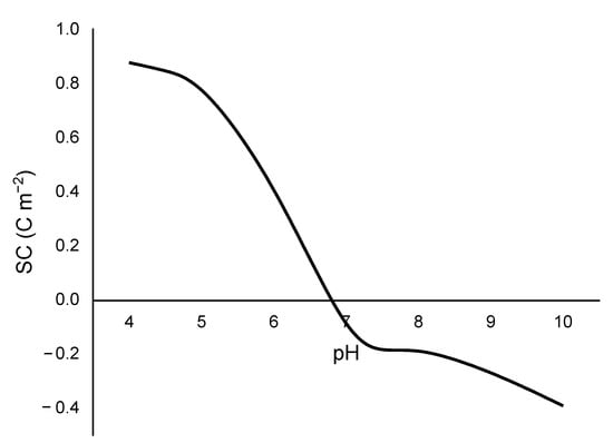 The SC of the materials is plotted against pH to obtain the SC distribution. The PZC is the pH at which the SC is neutral (SC = 0).