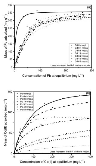 The Cd(II) and Pb(II) adsorption capacities are slightly above 240 mg g−1 and 350 mg g−1, respectively, which are higher than values previously reported for materials of a similar nature and for some conventional and novel adsorbents.
