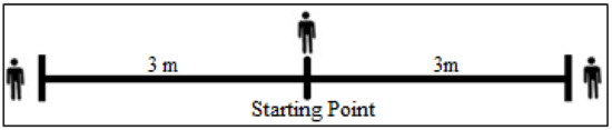 Special Wrestling Fitness Test (SWFT): Before the test, the participants completed a 20 min warm-up, which included general and specific wrestling exercises that athletes normally perform during training. The participants were familiarized with the test and the material before each evaluation to avoid any learning effect that could explain the improvement in actions over time. The test was performed on a wrestling mat (Dollamur, Fort Worth, Texas, USA) approved by United World Wrestling for international competitions, with the athlete throwing two other wrestlers of the same weight division and similar height (who were 6 m apart from each other) as many times as possible in three sets of 15 s, 30 s, and 30 s, respectively, with 10 s of rest between them [3,4,5,6,7] (see Figure 1). As in previous studies, the Freestyle and Women’s wrestlers used the fireman’s carry technique [3,5]. This procedure aimed to determine the heart rate values immediately after the test (HRfinal), heart rate immediately after 1 min of recovery (HR1min), and the total number of throws. The SWFTindex was calculated using the following equation: SWFTindex = (HRfinal + HR1min)/throws).