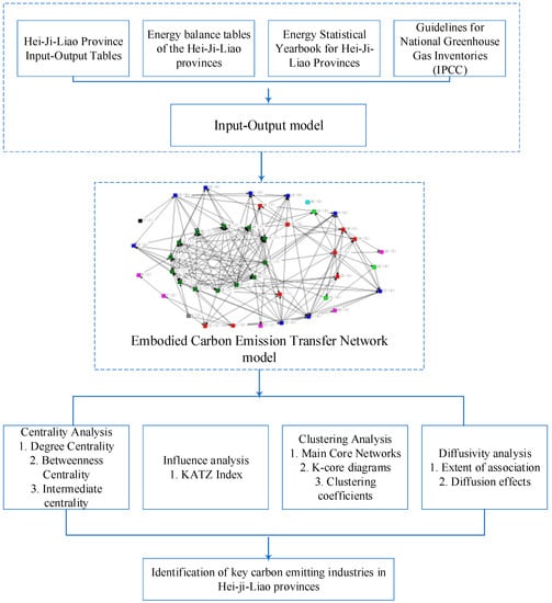 With the purpose of filling these gaps, the input–output model and social network analysis method are combined in this research to explore the important position of the industrial sector in China’s industrial development in the three provinces of Heilongjiang, Jilin and Liaoning. Meanwhile, the Embodied carbon emission flow relationships among industrial sectors in the three provinces of Hei-Ji-Liao are analyzed deeply at the provincial level, key carbon-emitting industrial sectors are identified and key Embodied carbon emission flow paths are derived. This paper provides theoretical support and policy formulation reference for reducing carbon emissions, contributing to optimizing industrial structure and improving clean production capacity between provinces.