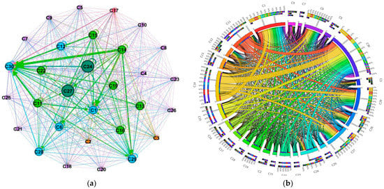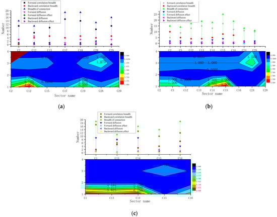 Finally, an analysis of the clustering of the key industrial sectors of interest unveils clear clustering characteristics in the ECETNs of the three provinces. Coal mining (C2), chemicals (C12), processing & manufacturing (C15, C17, C19) and distribution services (C28, C29) in Liaoning; mining & processing (C2, C5, C13, C14), processing & manufacturing (C15, C16), energy & chemicals (C12, C24) and distribution services (C28) in Jilin; agriculture and livestock (C1) and metallurgical manufacturing (C13, C14, C15, C16) in Heilongjiang all have high agglomeration. The diffusivity tests of the high-concentration sectors demonstrate that mining and manufacturing in Liaoning dominate the carbon emissions of the industrial system and the energy efficiency of the industrial chain can be reinforced by promoting the clean development of these sectors, so as to curtail the carbon emissions of the whole industrial system. Jilin’s metal manufacturing industry occupies a key position in the ECETN. Both its own Embodied carbon emissions and the Embodied carbon emissions flowing into the chain or even the industrial system can exert a significant impact. The main carbon-emitting industrial sectors in Heilongjiang Province are concentrated in agriculture and manufacturing. The total emissions of the industrial system can be significantly reduced by effectively controlling their carbon emissions.