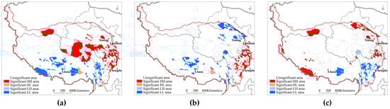 Spatial clustering features of the protection effectiveness of the natural protected areas on the Qinghai–Tibet Plateau based on ecosystem services. (a) Water conservation (b) Soil conservation (c) Windbreak and sand fixation.