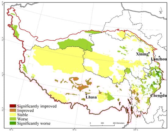 Classification of the changes in the ecosystem services of the protected areas on the Qinghai–Tibet Plateau.
