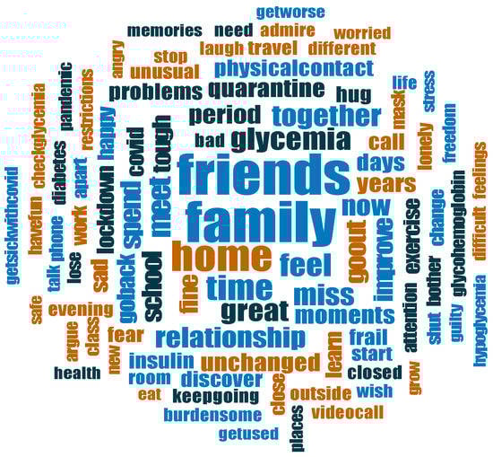 - Zeiler, M.; Wittek, T.; Graf, T.; Bozic, I.; Nitsch, M.; Waldherr, K.; Karwautz, A.; Wagner, G.; Berger, G. Psychosocial impact of the COVID-19 pandemic for adolescents with type-1-diabetes: A qualitative interview study involving adolescents and parents. Behav. Med. 2022, 1–11. [Google Scholar] [CrossRef]