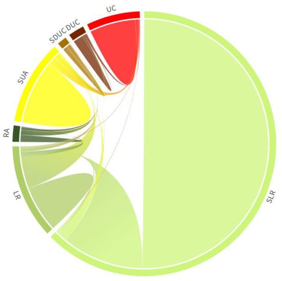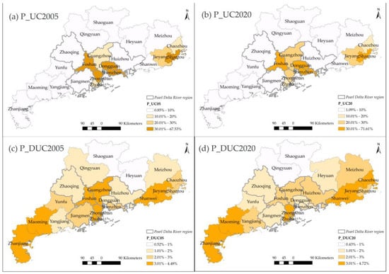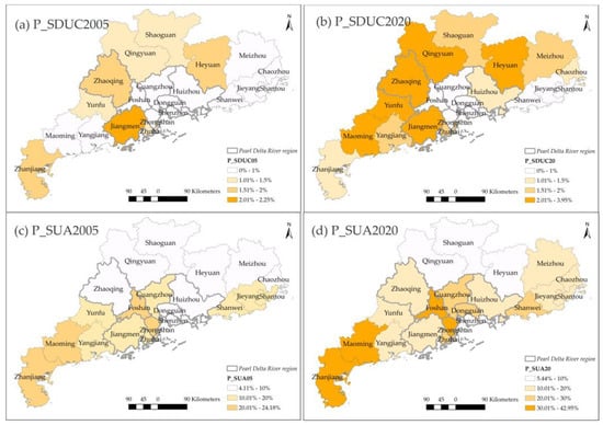 | Suburban or peri-urbanized area (SUA) | 300 | 5000 | 0 | (1) 8-connectivity cluster; (2) Distance to UC or DUC < 3 km |