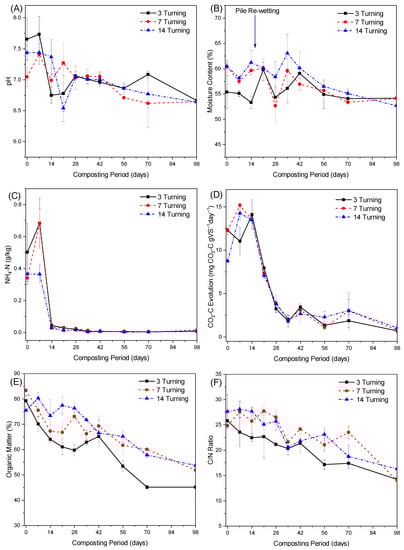 - Manga, M.; Muoghalu, C.; Camargo-Valero, M.A.; Evans, B.E. Influence of Turning Frequency on Faecal Sludge Composting Dynamics, Maturity Indices and Compost Stability. Int. J. Environ. Res. Public Health. n.d.