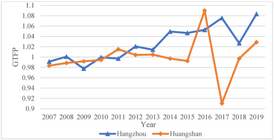 GTFP Trend in Huangshan and Zhejiang city from 2007 to 2019.