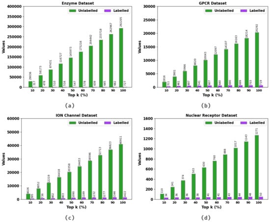 | Top k (%) | Unlabeled | Labeled | Top k (%) | Unlabeled | Labeled |