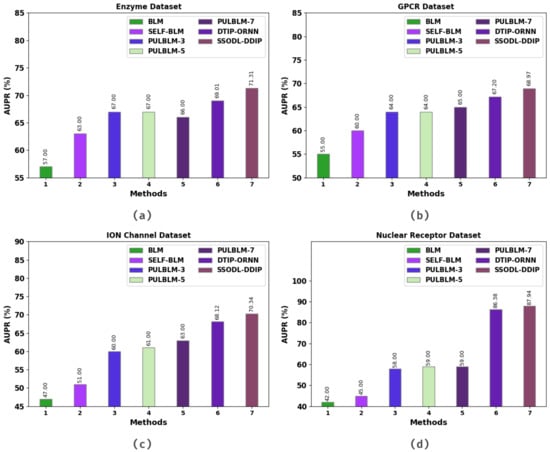 - Rajpura, H.R.; Ngom, A. Drug target interaction predictions using PU-Leaming under different experimental setting for four formulations namely known drug target pair prediction, drug prediction, target prediction and unknown drug target pair prediction. In Proceedings of the 2018 IEEE Conference on Computational Intelligence in Bioinformatics and Computational Biology (CIBCB), Saint Louis, MO, USA, 30 May–2 June 2018; pp. 1–7. [Google Scholar]