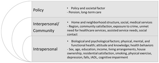 Cho, M.S.; Kwon, M.Y. Factors Associated with Aging in Place among Community-Dwelling Older Adults in Korea: Findings from a National Survey. Int. J. Environ. Res. Public Health 2023, 20, 2740. https://doi.org/10.3390/ijerph20032740