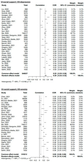 In cases where the independent variable was divided into different dimensions from the construct ‘loneliness’ or ‘social support’, the average overall correlation between the different dimensions was obtained [44]. If the study met the inclusion criteria and none of the aforementioned options were possible, the corresponding authors of the original articles were contacted to obtain the required unreported data. Correlations were reported as positive when the relationship was what was expected (i.e., lower social support or higher loneliness directly related to greater mental disorder symptoms).