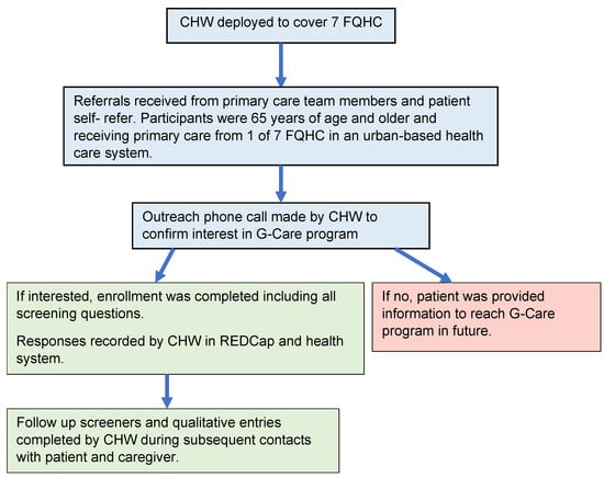 CHWs were deployed to cover the 7 FQHC and followed the recruitment and enrollment steps shown in Figure 1 (see below).